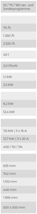 Leistung bis 70 Körbe/h, 1.260 Teller/h,