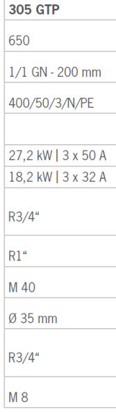 oder 1 x 1/1 GN bis max. 200 mm Tiefe