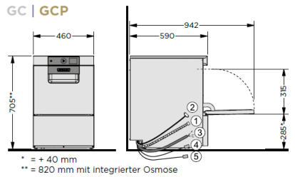 nur 820 mm ideal für den Einbau unter der