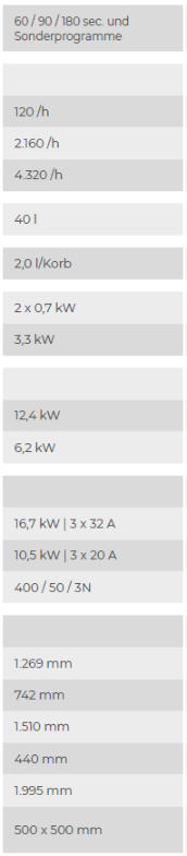 Leistung bis 120 Körbe/h, 2.160 Teller/h,