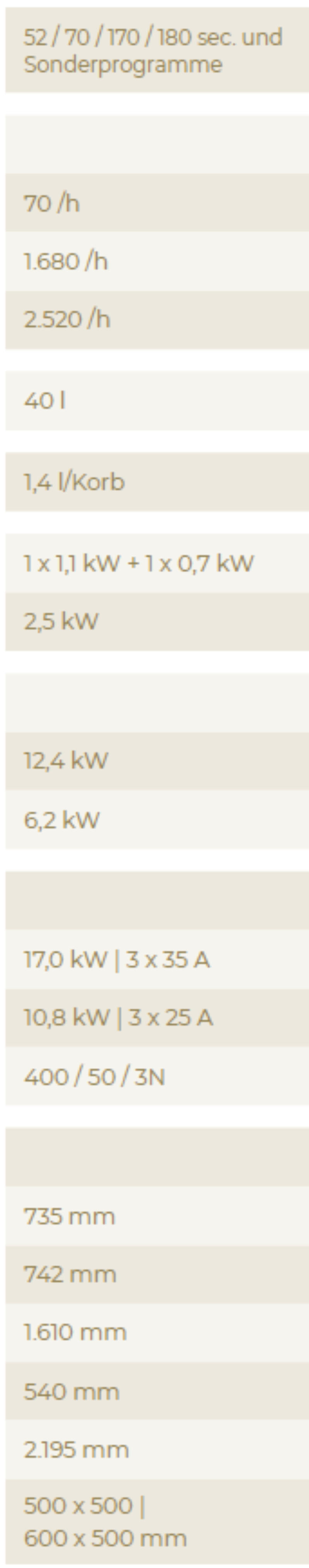 Leistung bis 70 Körbe/h, 1.260 Teller/h,